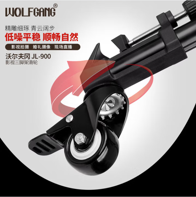 沃尔夫冈/WOLFGANG JL-900 三脚架及配件 单反微单相机摄影机三角架适用于佳能索尼尼康相机摄影机脚架JL-900脚轮三脚架专用地轮滑轮