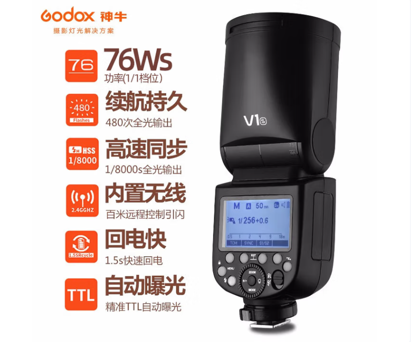 神牛/Godox V1 补光灯 机顶闪光灯高速同步TTL锂电池热靴灯口袋灯外拍便携