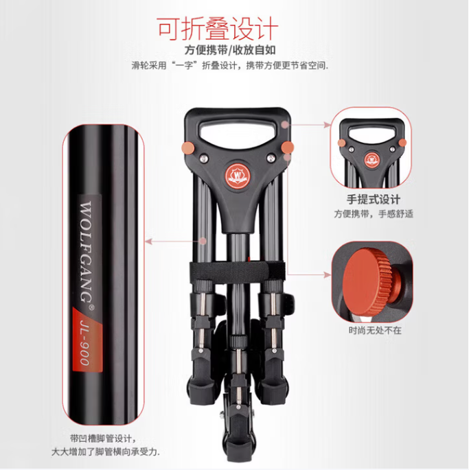 沃尔夫冈/WOLFGANG JL-900 三脚架及配件 单反微单相机摄影机三角架适用于佳能索尼尼康相机摄影机脚架JL-900脚轮三脚架专用地轮滑轮