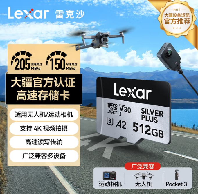 雷克沙/Lexar 512G TF U盘/存储卡 TF(MicroSD)存储卡 V30 4K 读205MB/s